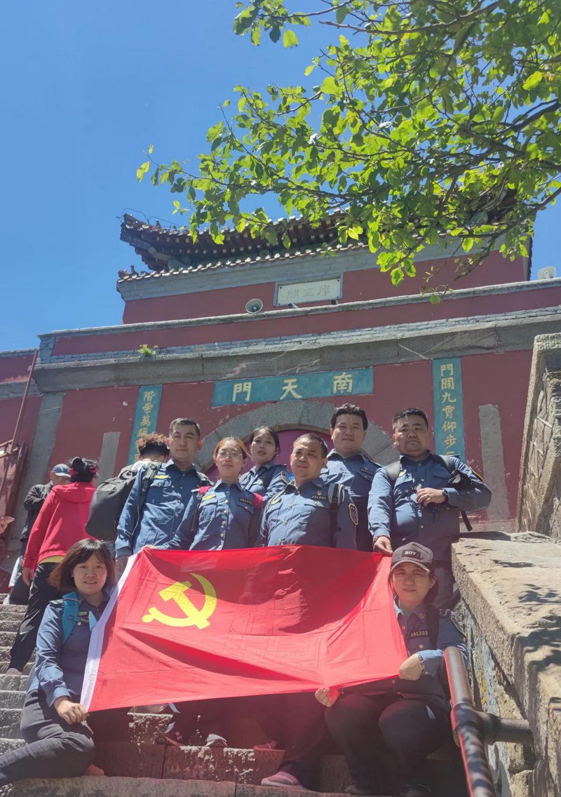 泰山十八盘共计1630余级台阶,岩层陡立,一路攀登,学员们虽然体力消耗较大,但大家发扬不怕苦不怕累的精神,勇于面对挑战,勇攀十八盘。山再高,往上攀,总能登顶;路再长,走下去,定能到达。抵达南天门后,党员们登高望远,胜利喜悦的心情油然而生。