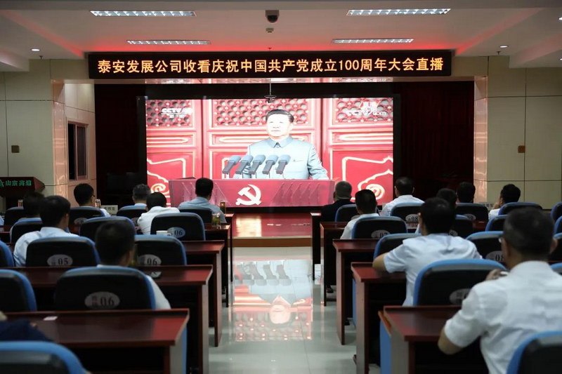 7月1日,在中国共产党成立100周年之际,泰安发展公司以党支部为单位,通过主题党日等多种形式组织全体党员群众收看“庆祝中国共产党成立100周年大会”直播,庆祝党的百年华诞。