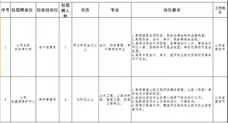 一、招聘岗位(详见山东高速泰安发展有限公司校园招聘岗位计划表)